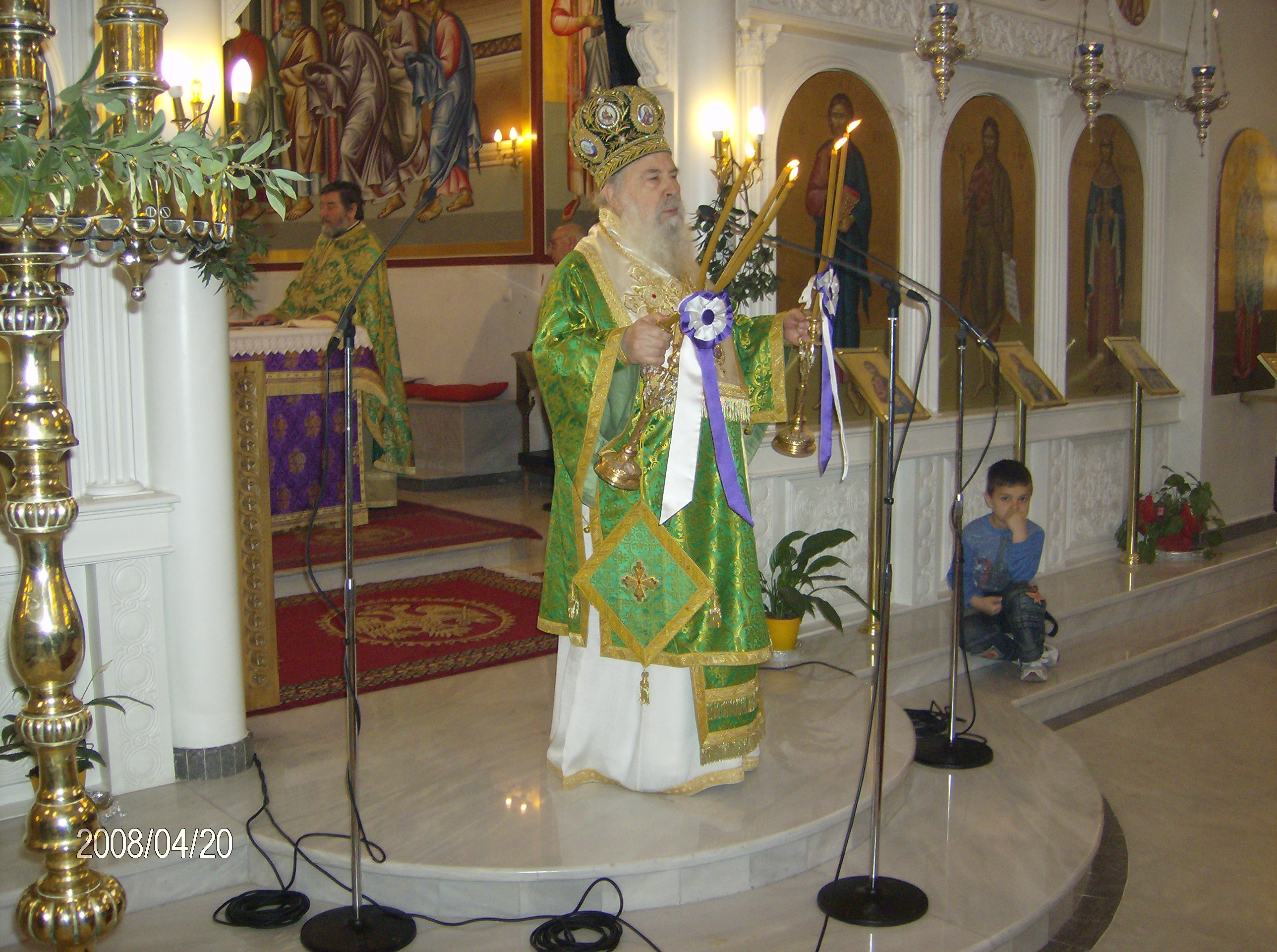 Κυριακή Βαΐων 2008, στον Ιερό Ναό του Αγίου Παντελεήμονα στο Βότση. Από αριστερά: π. Κωνσταντίνος (ιερέας), π. Χρυσόστομος (αρχιμανδρίτης), π. Προκόπιος (ιεροδιάκονος), σεβασμιότατος μητροπολίτης Προκόπιος, π. Θεόδωρος (ιερέας), π. Βαρθολομαίος (αρχιμανδρίτης) και π. Νικόλαος (ιερέας).