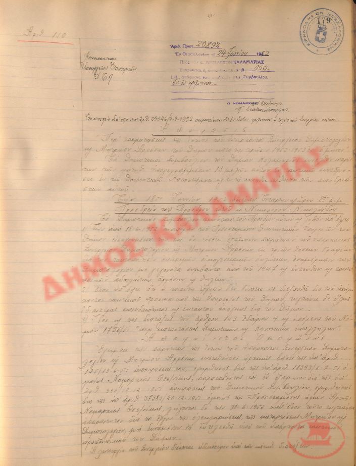 Νo. Decision 150 of the Municipality of Kalamaria, on June 24, 1952