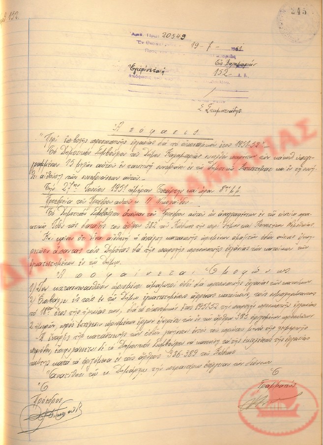 No. Decision 152 of the Municipality of Kalamaria, on June 27th, 1951
