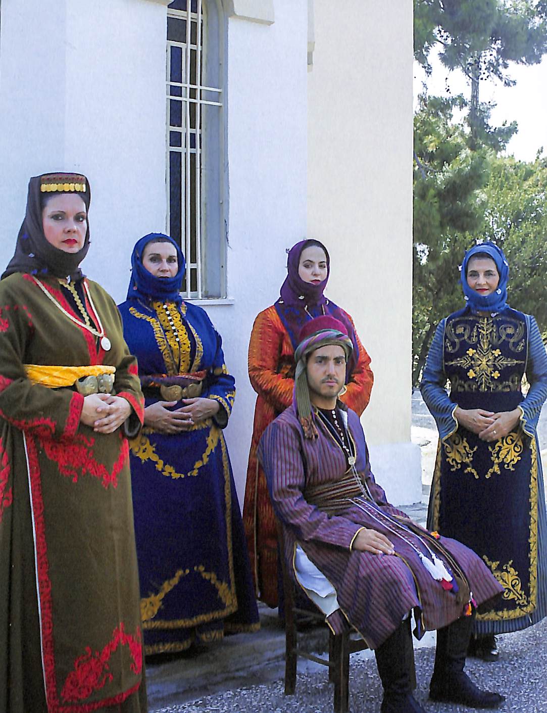 Women's and man's traditional costumes. From the left, women's costumes from Karvali, Misti, Nigdi and men's costumes from Caesarea.